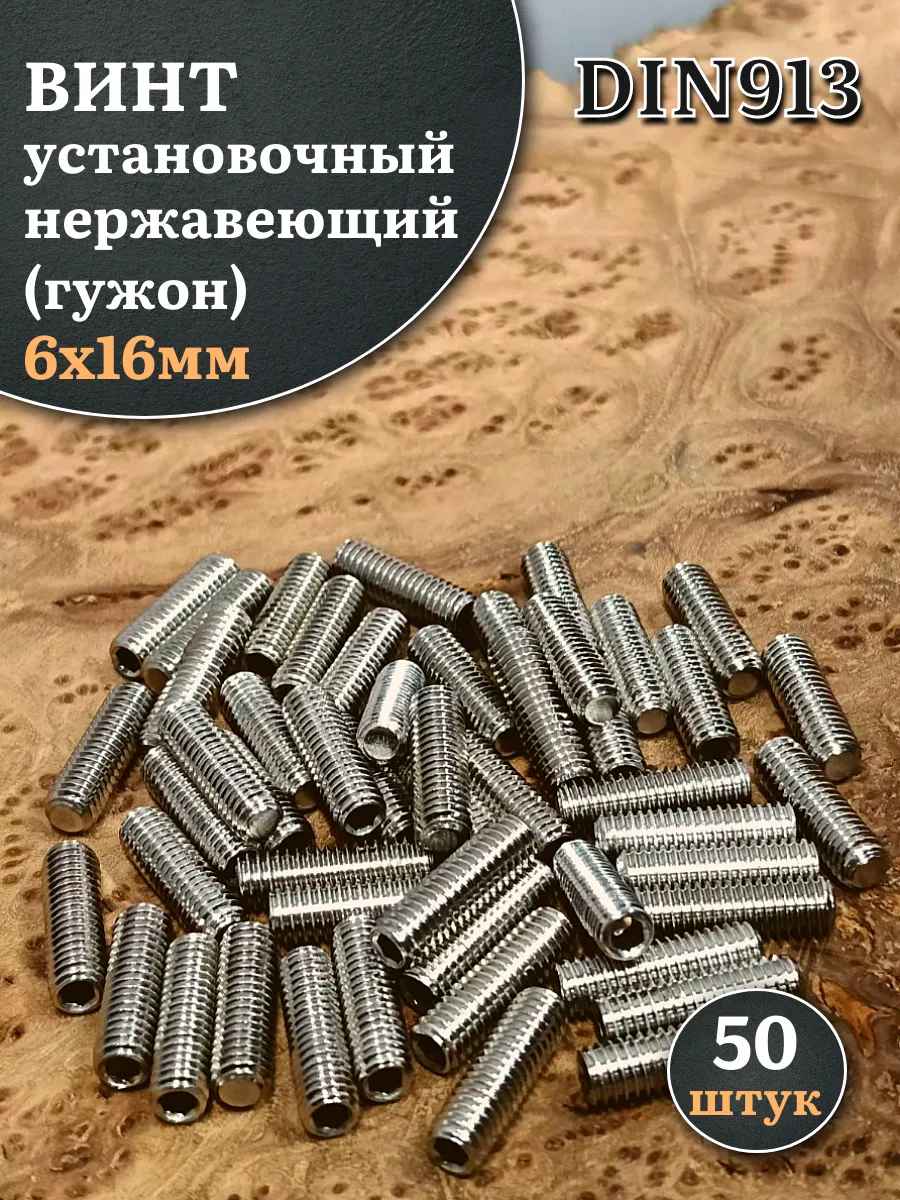 Винт установочный нержавеющий М6х16 DIN913 (гужон), 50 шт.