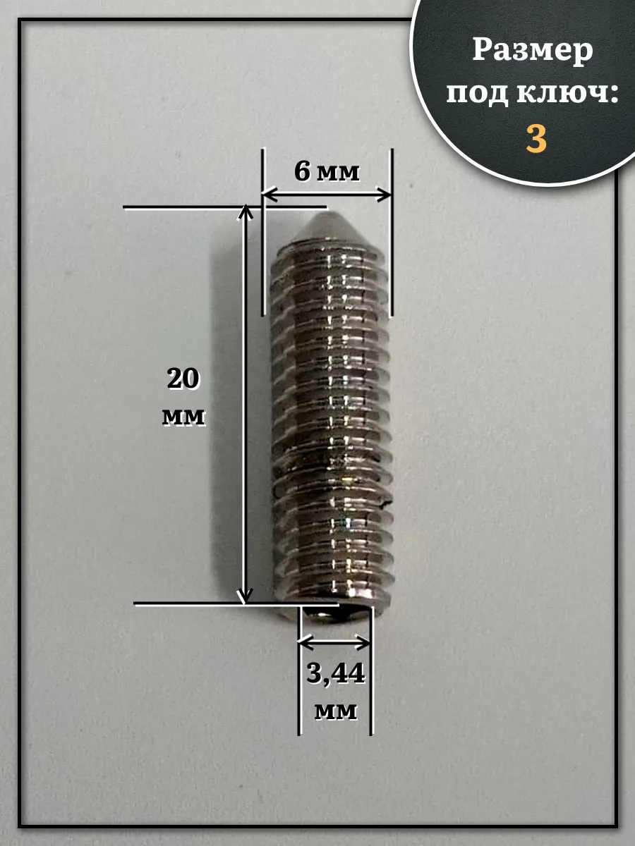| Винт установочный нержавеющий М6х20 DIN914 (гужон), 10 шт. | МК18628ф10 | 1 шт. |