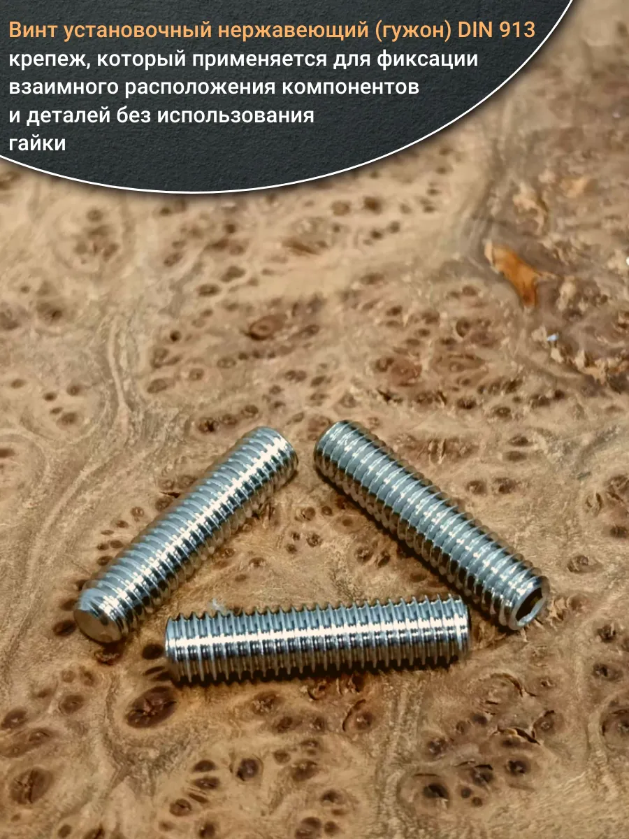 Винт установочный нержавеющий М6х25 DIN913 (гужон), 10 шт.