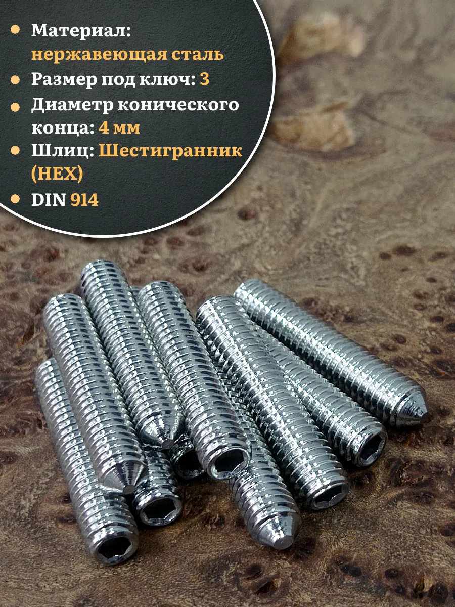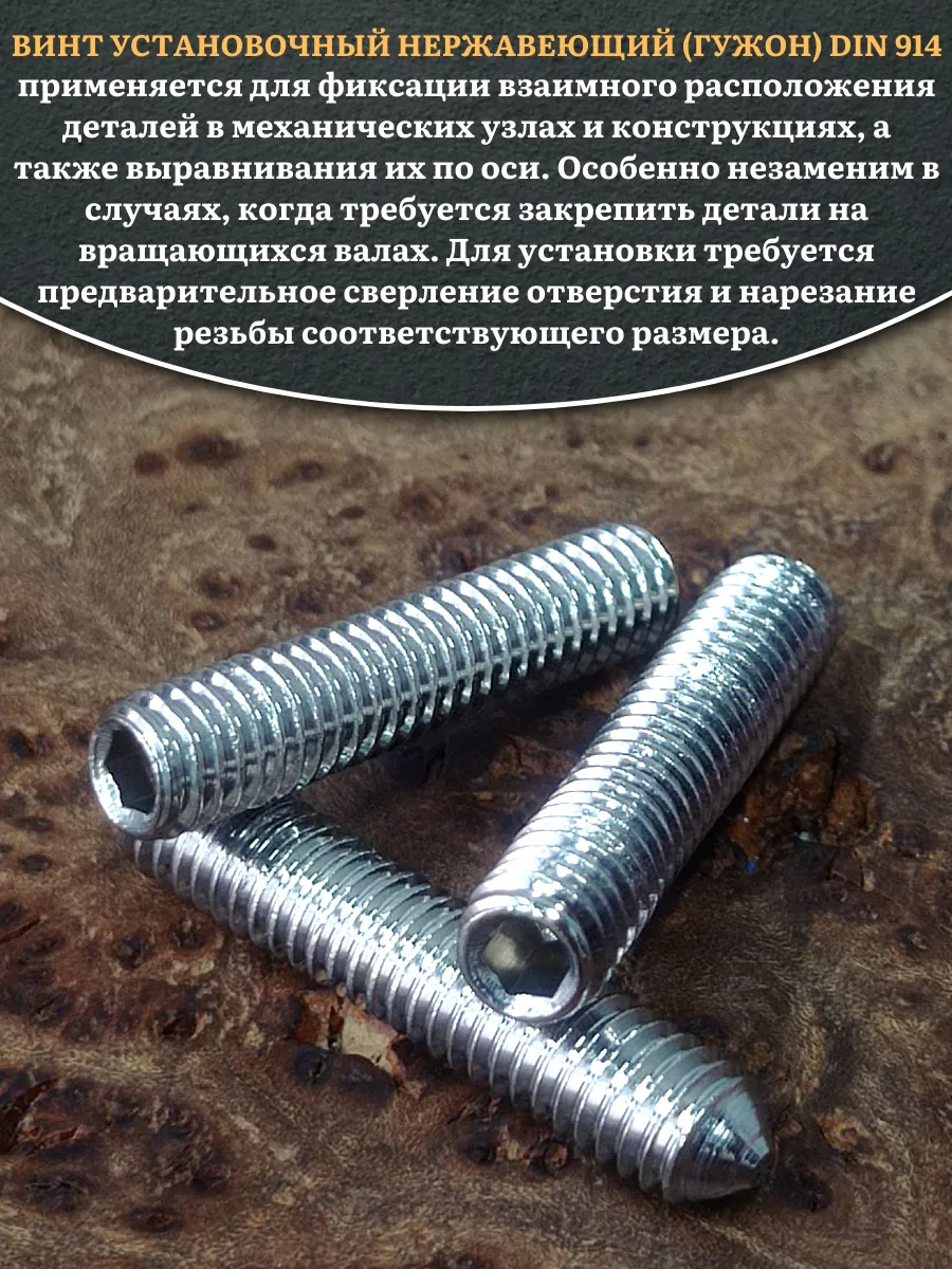 Винт установочный нержавеющий М6х30 DIN914 (гужон), 10 шт.