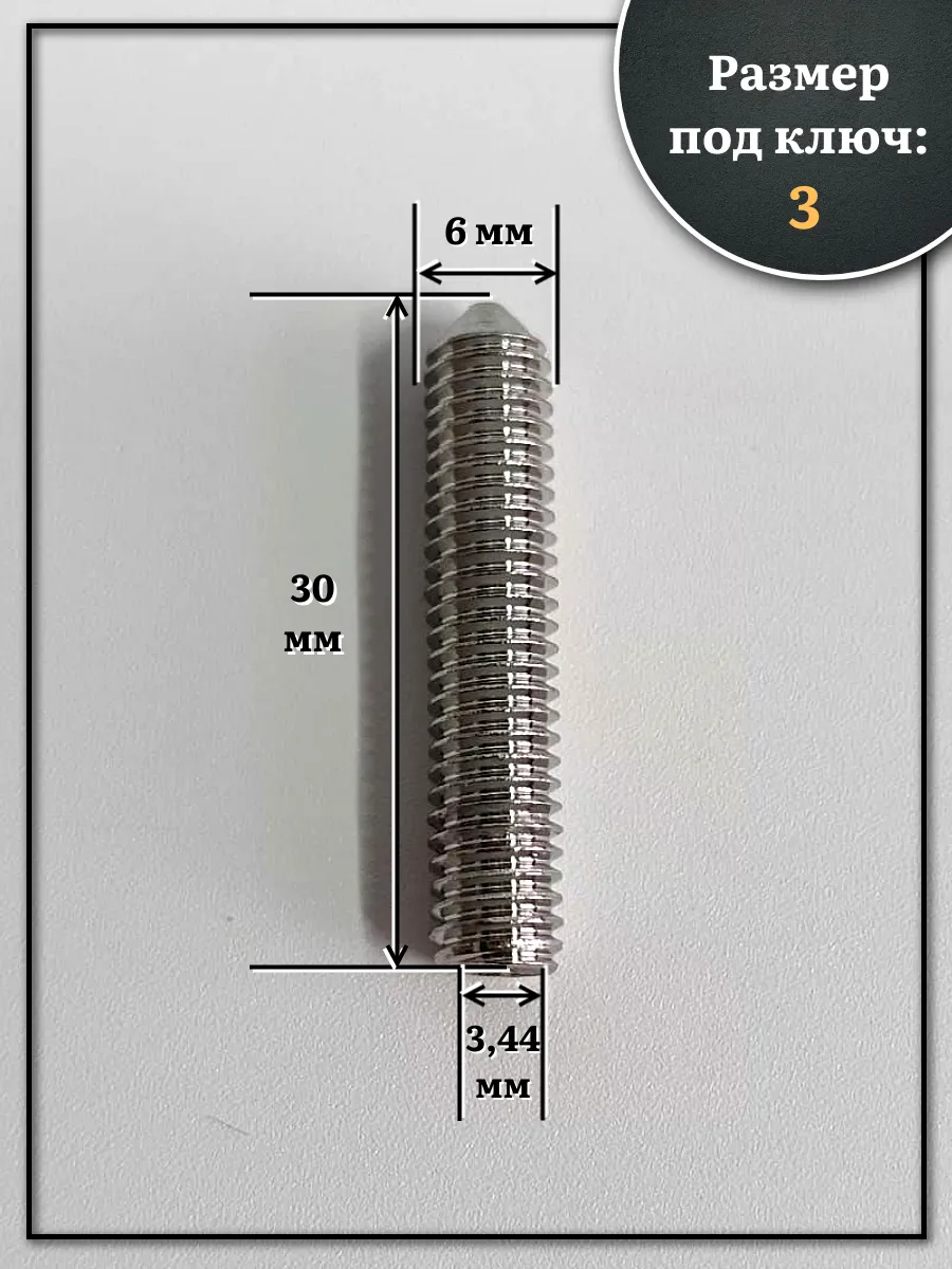 | Винт установочный нержавеющий М6х30 DIN914 (гужон), 50 шт. | МК18619ф50 | 1 шт. |
