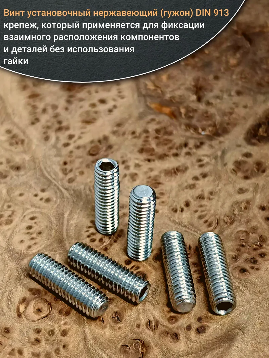 Винт установочный нержавеющий М8х16 DIN913 (гужон), 10 шт.