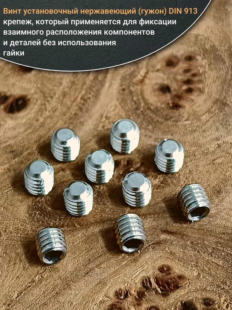 Винт установочный нержавеющий М8х8 DIN913 (гужон), 10 шт.