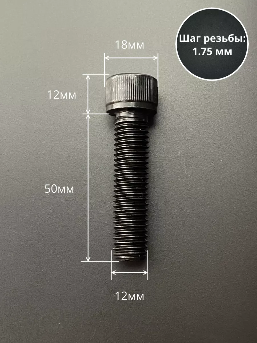 Винт высокопрочный ПР М12х50 мм к.п.12.9 черный DIN912, 2 шт.