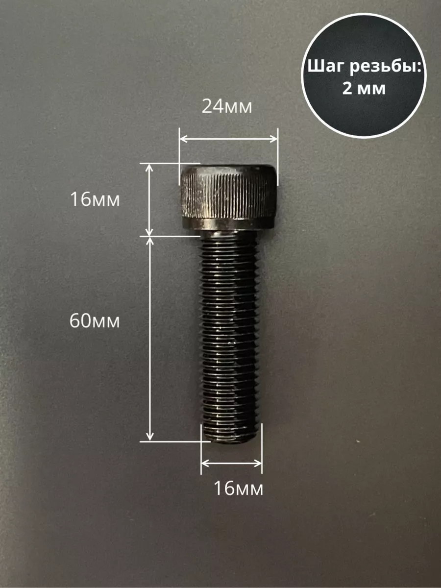 Винт высокопрочный ПР М16х60 мм к.п.12.9 черный DIN912, 2 шт.