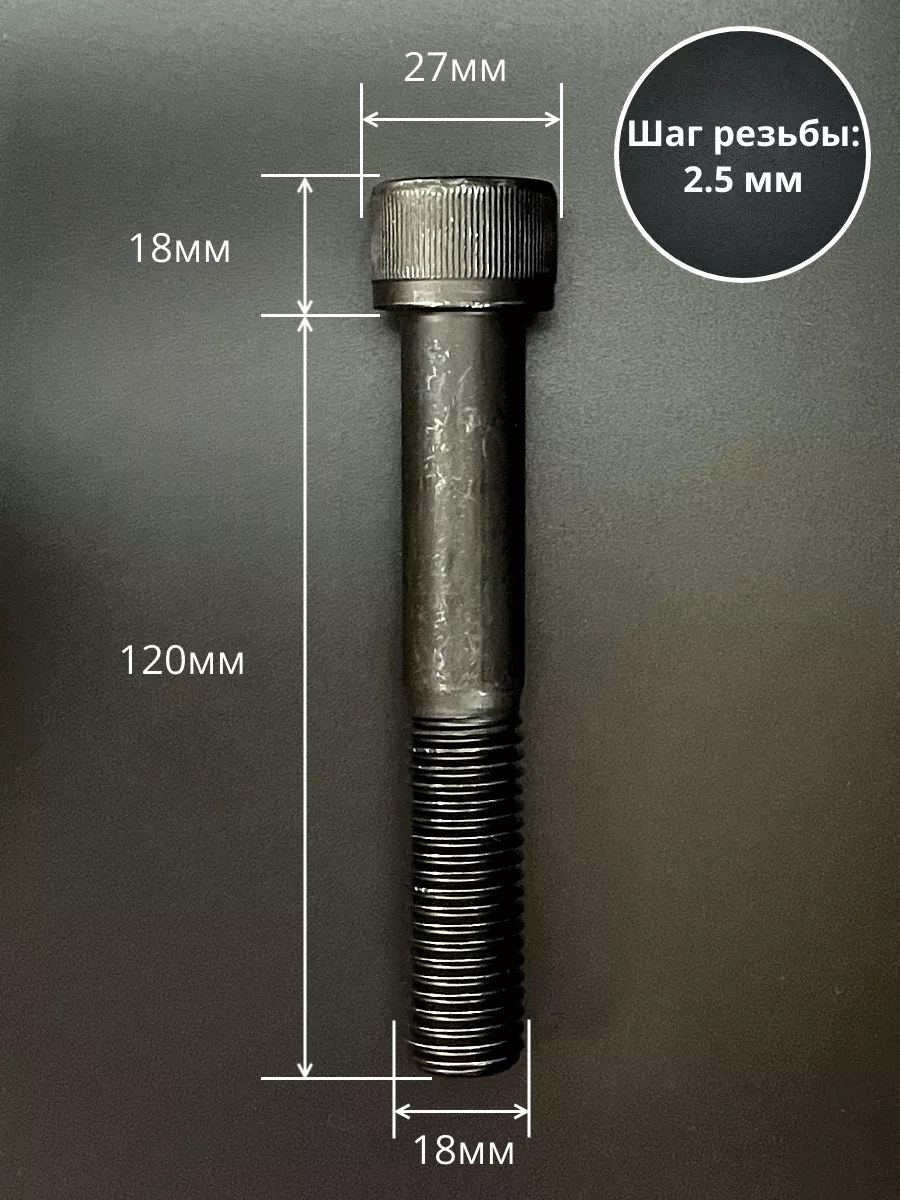 Винт высокопрочный НР М18х120 мм к.п.12.9 черный DIN912, 2 шт.