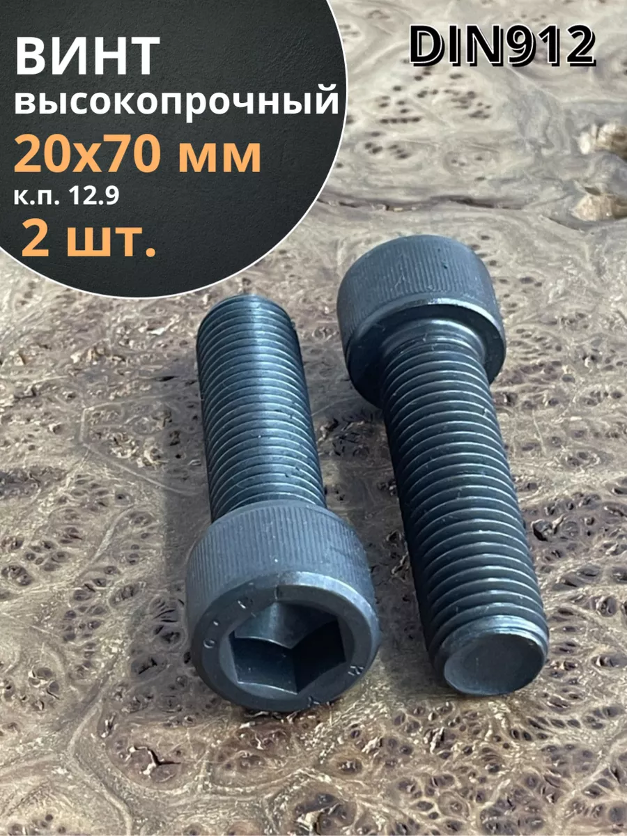 Винт высокопрочный ПР М20х70 мм к.п.12.9 черный DIN912, 2 шт.