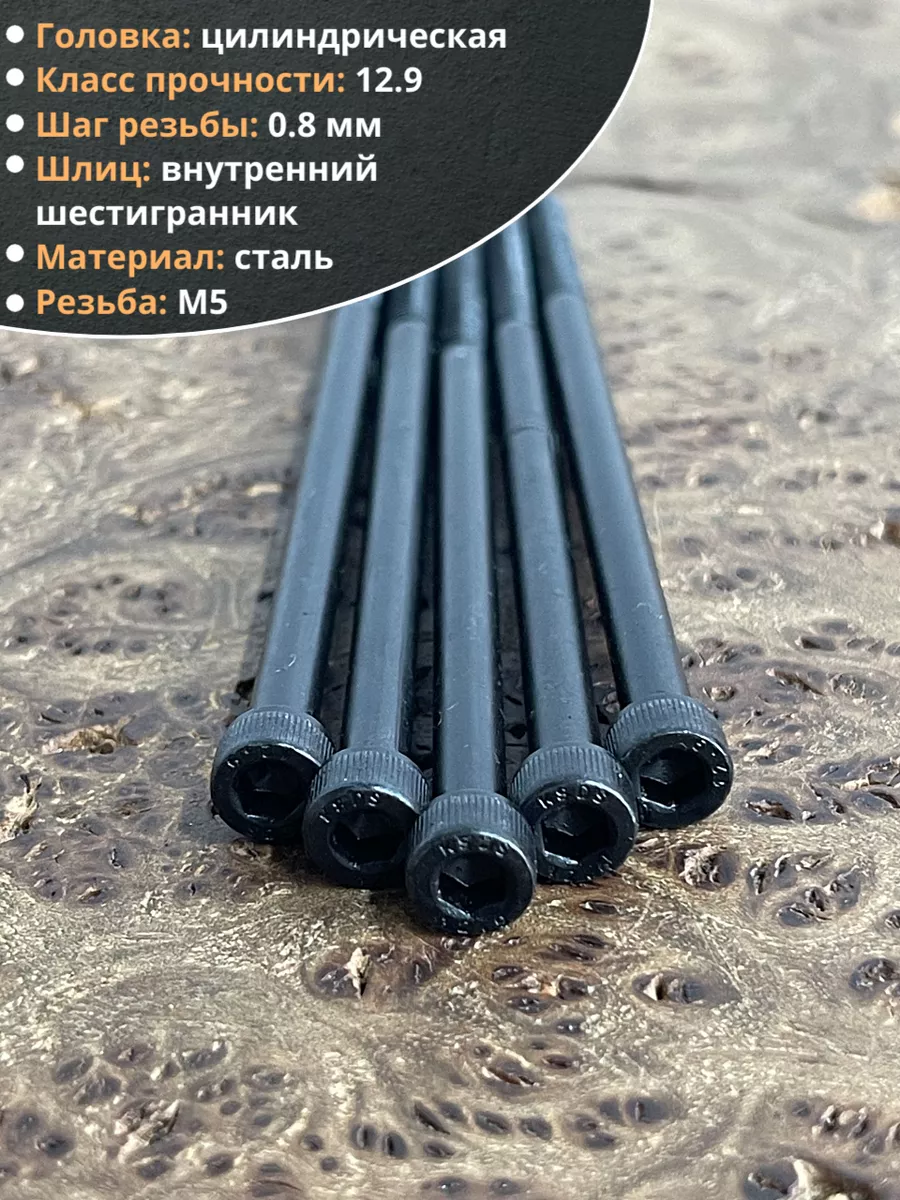 Винт высокопрочный НР М5х100 мм к.п.12.9 черный DIN912, 10 шт.