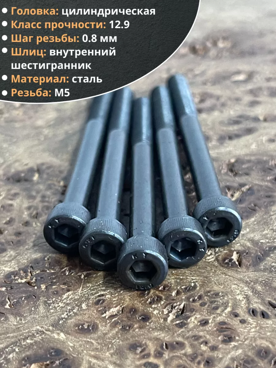 Винт высокопрочный НР М5х60 мм к.п.12.9 черный DIN912, 10 шт.