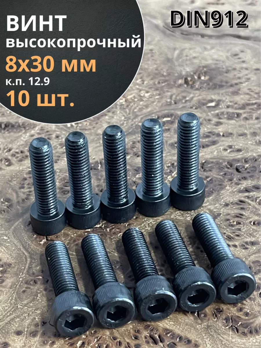 Винт высокопрочный ПР М8х30 мм к.п.12.9 черный DIN912, 10 шт.