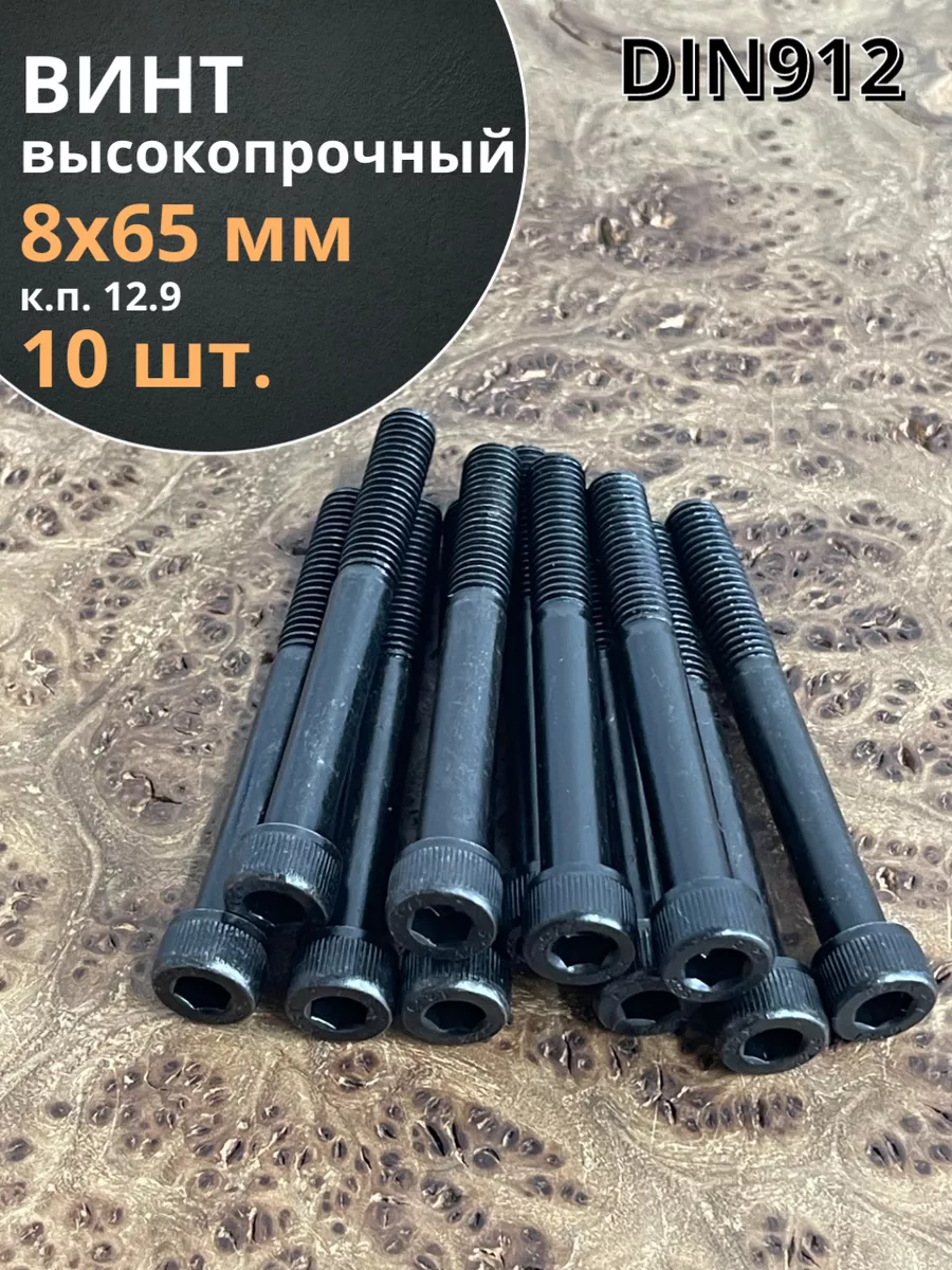 Винт высокопрочный НР М8х65 мм к.п.12.9 черный DIN912, 10 шт.
