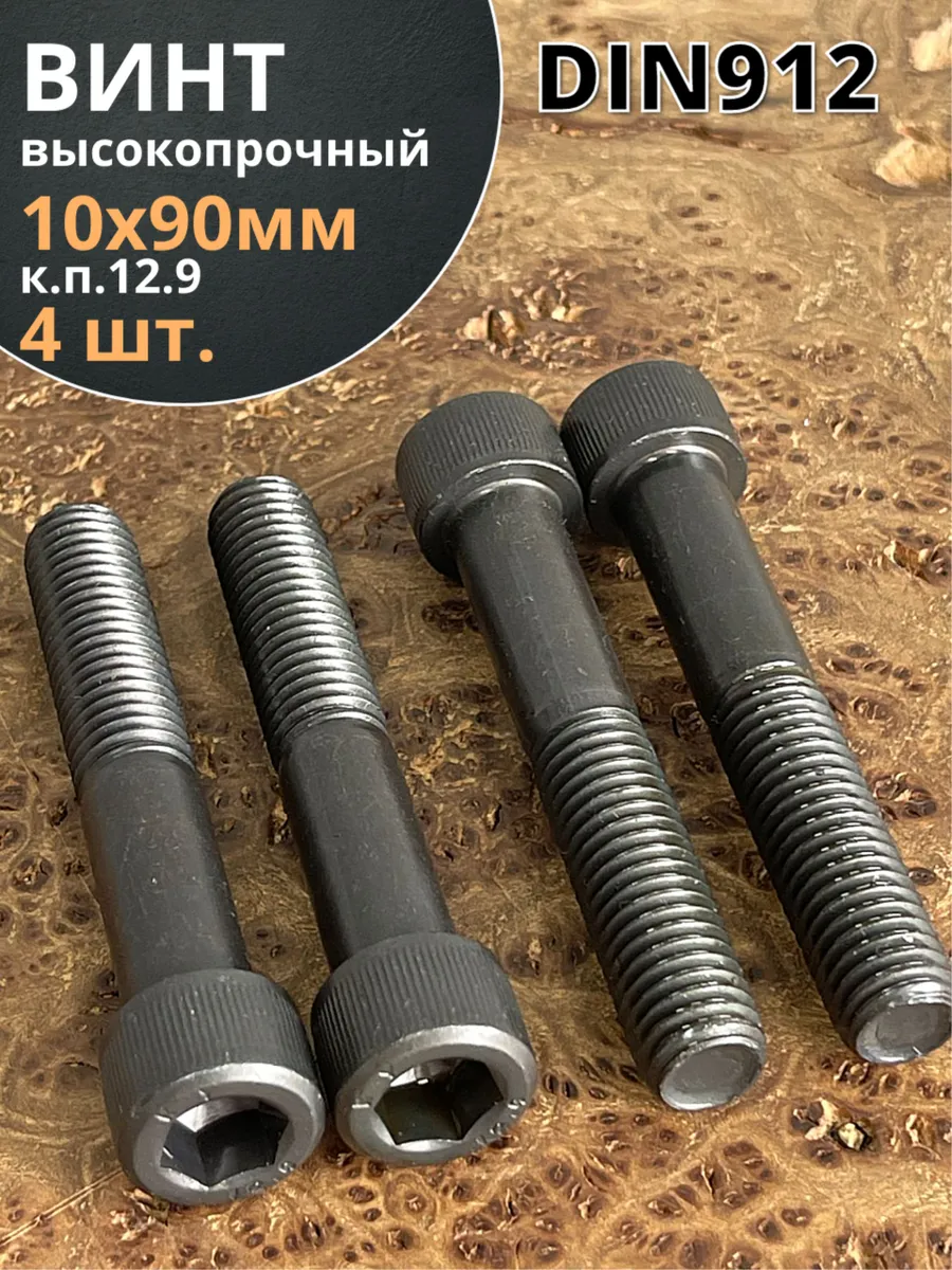 Винт высокопрочный НР М10х90 мм к.п.12.9 черный DIN912, 4 шт.