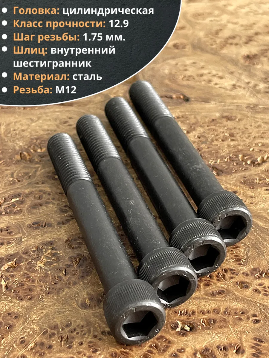Винт высокопрочный НР М12х100 мм к.п.12.9 черный DIN912, 4 шт.