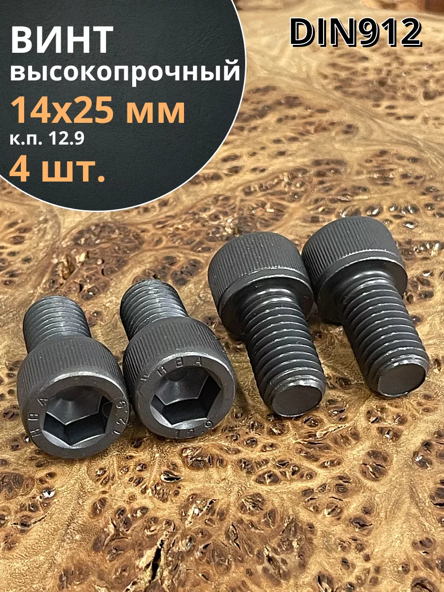 Винт высокопрочный ПР М14х25 мм к.п.12.9 черный DIN912, 4 шт.