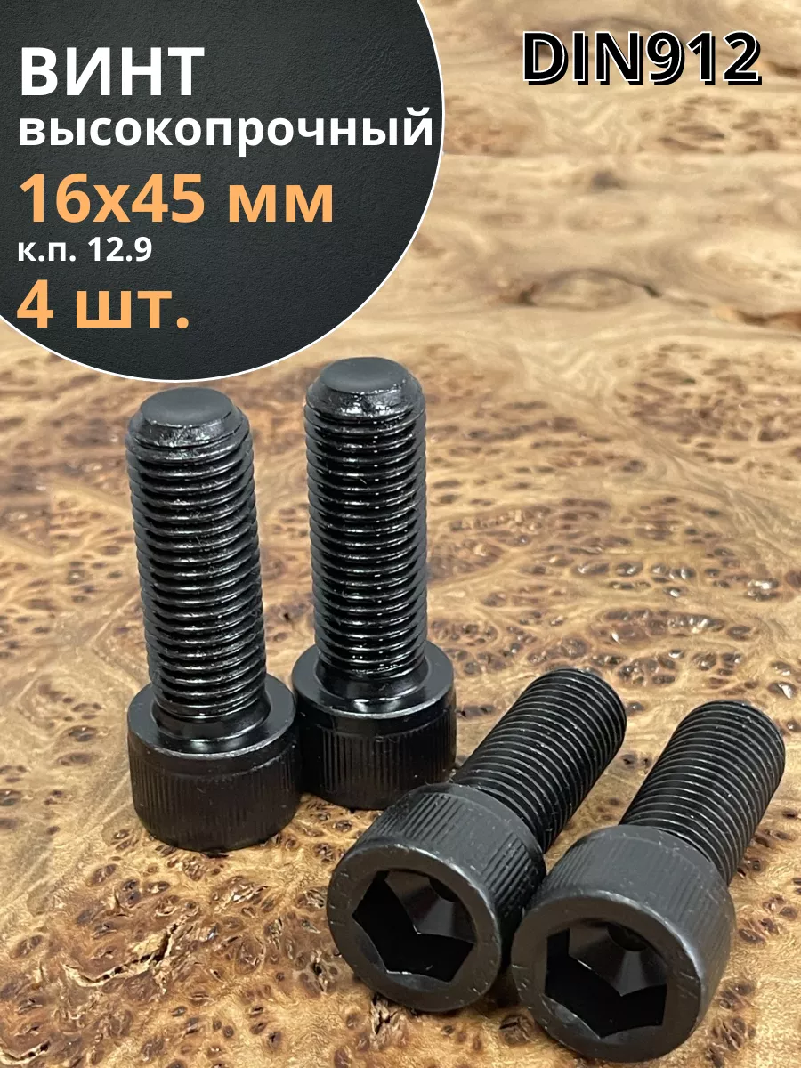 Винт высокопрочный ПР М16х45 мм к.п.12.9 черный DIN912, 4 шт.
