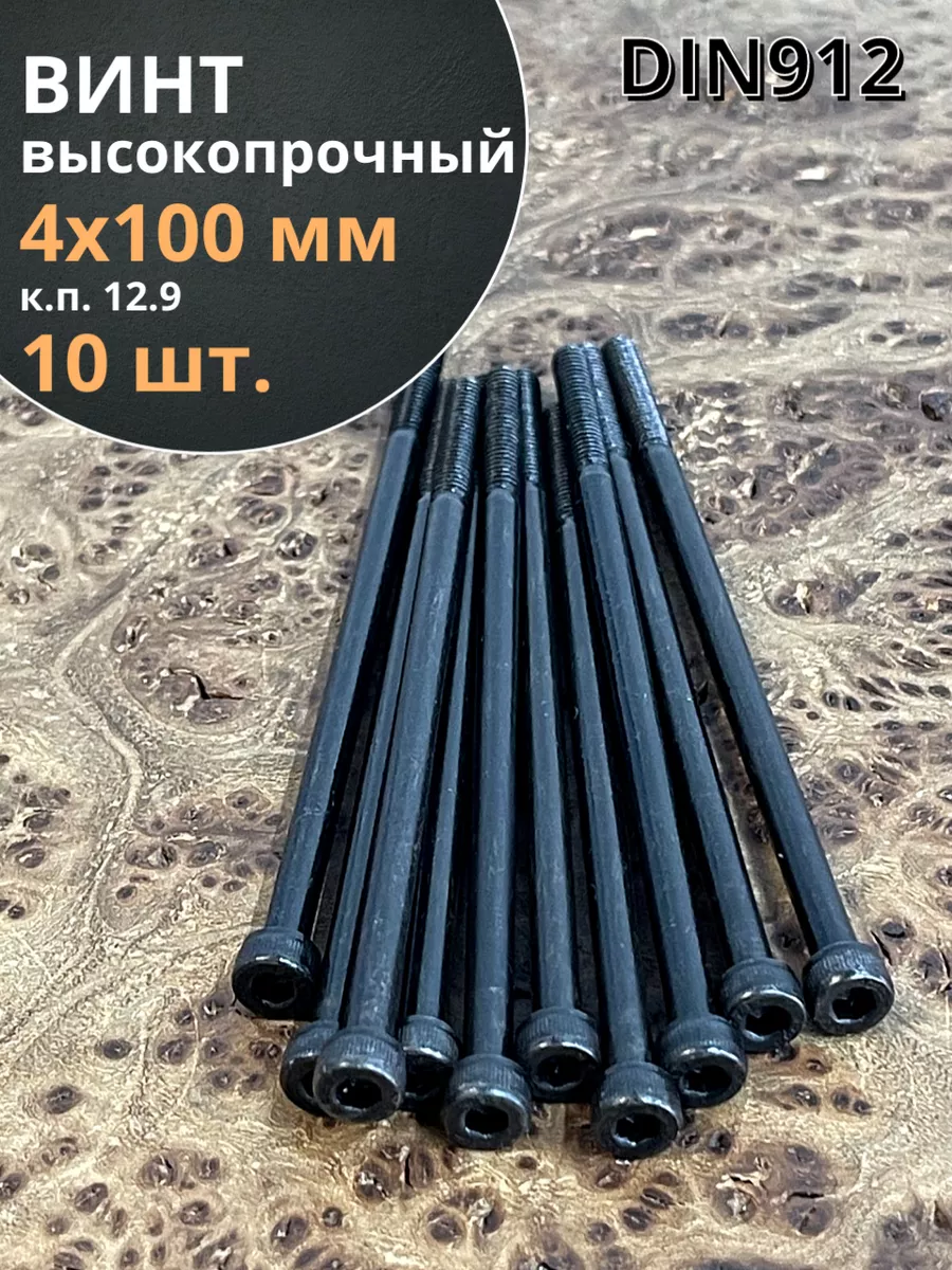 Винт высокопрочный НР М4х100 мм к.п.12.9 черный DIN912, 10 шт.