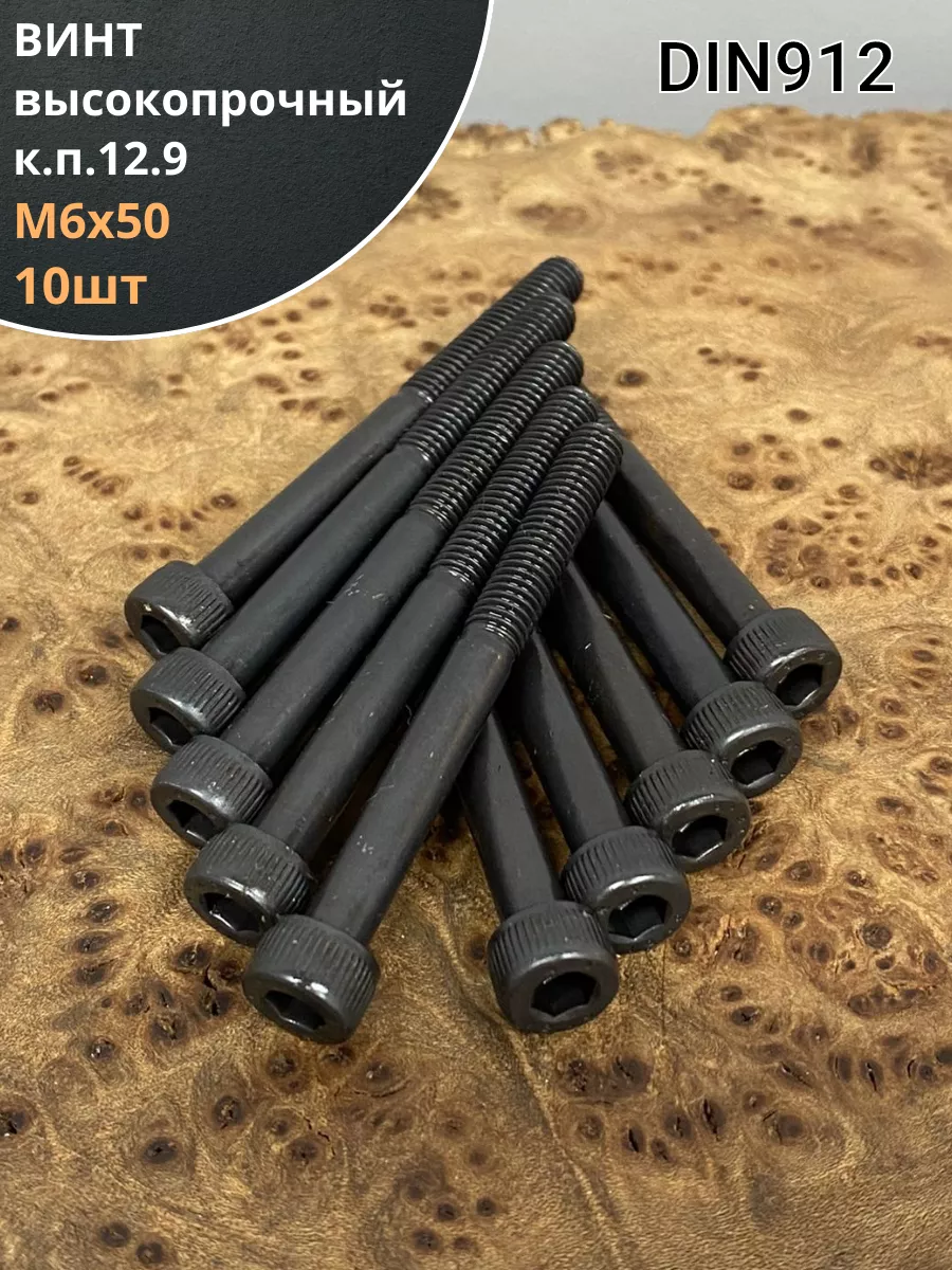 Винт высокопрочный НР М6х50 мм к.п.12.9 DIN912, 10 шт.
