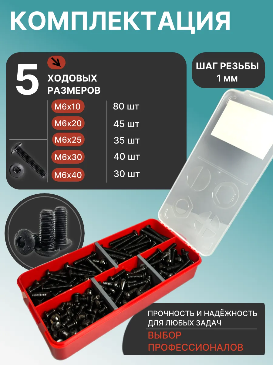 Винты чёрные М6 DIN7380 к.п.10.9 в органайзере НАБОР 1