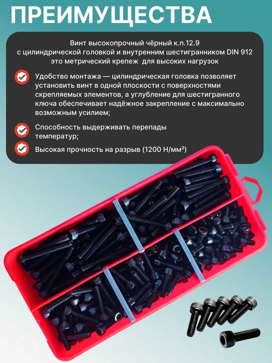 Винты М5 черные к.п.12.9 DIN912 в органайзере НАБОР 3