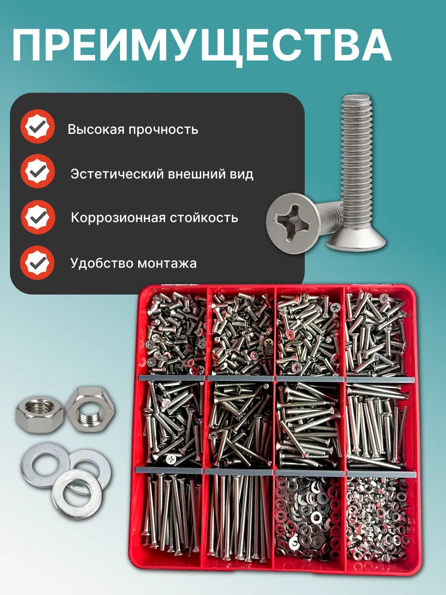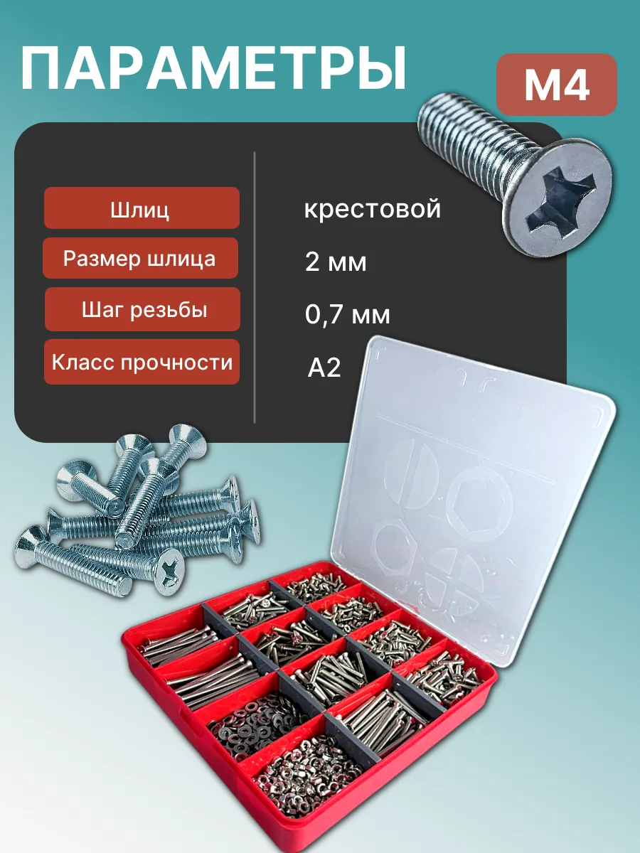 Винты нерж потай М4 DIN965 с гайкой,шайбой органайзер НАБОР4