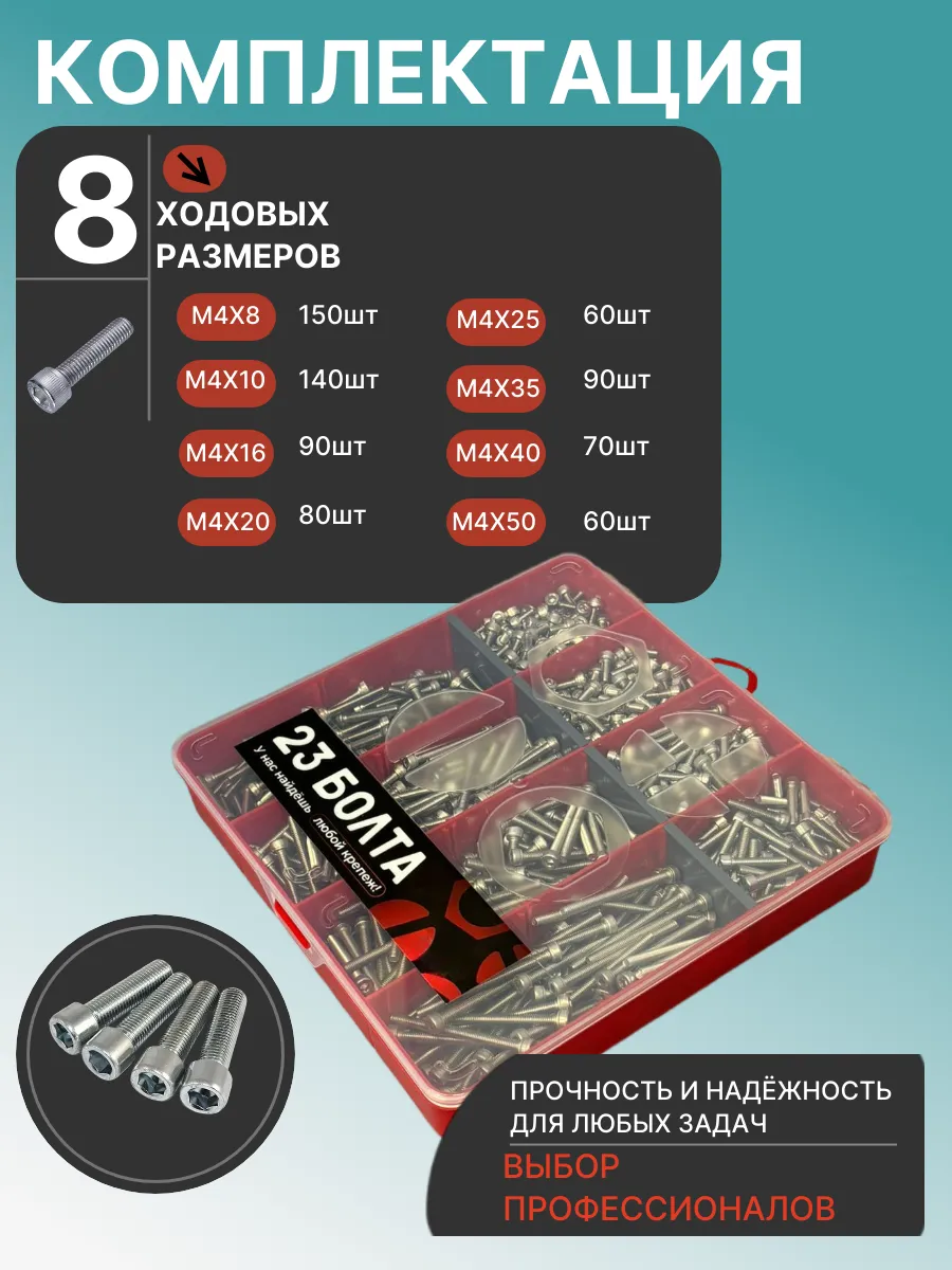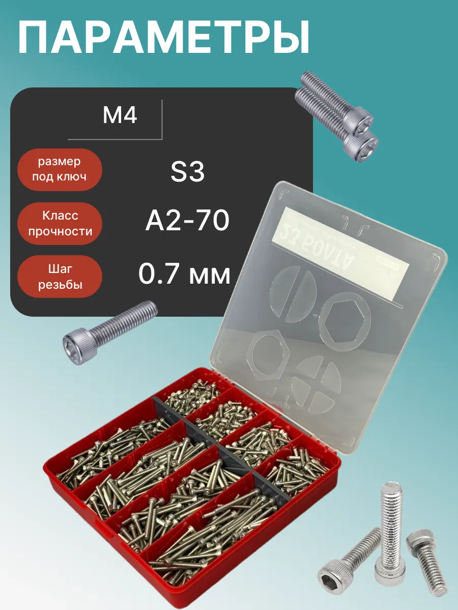 Винты нержавеющие М4 DIN912 в органайзере НАБОР 1