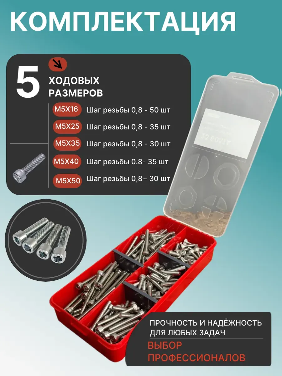 Винты нержавеющие М5 DIN912 в органайзере НАБОР 1