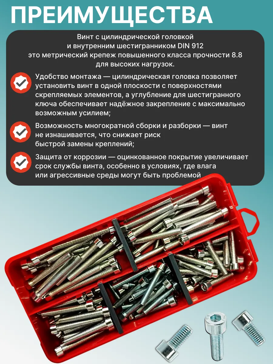 Винты под шестигранник М6 ОЦ 8.8 DIN912 органайзер НАБОР 2