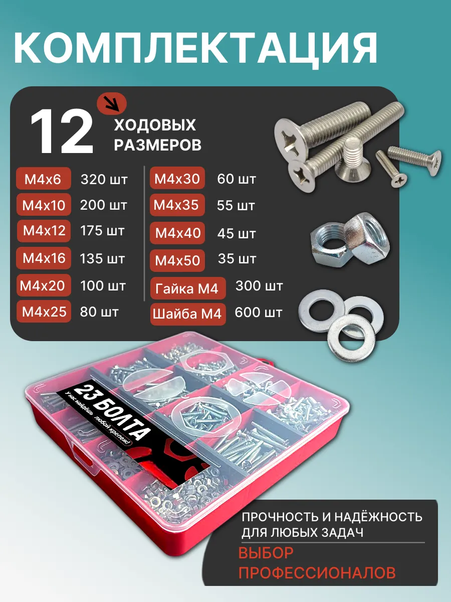 Винты потай ОЦ М4 DIN965 с гайкой,шайбой органайзер НАБОР3