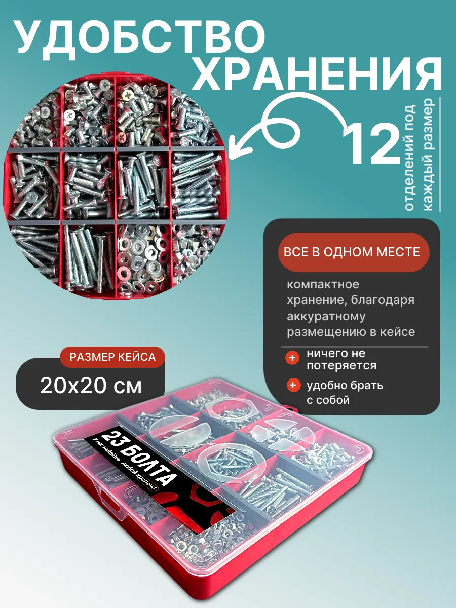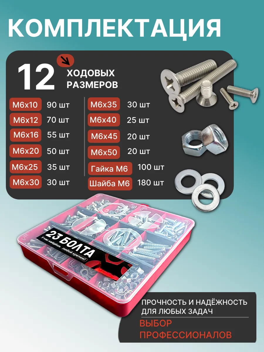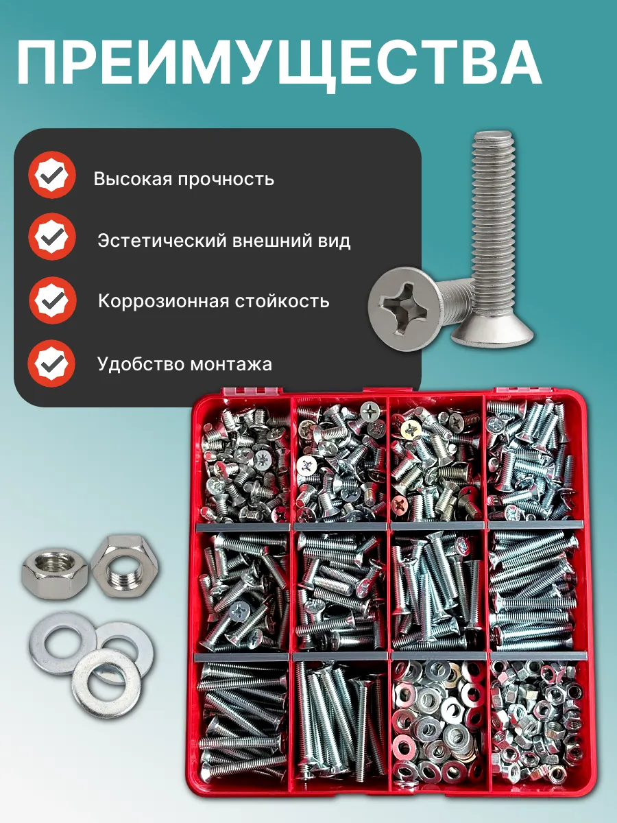 Винты потай ОЦ М6 DIN965 с гайкой,шайбой органайзер НАБОР2