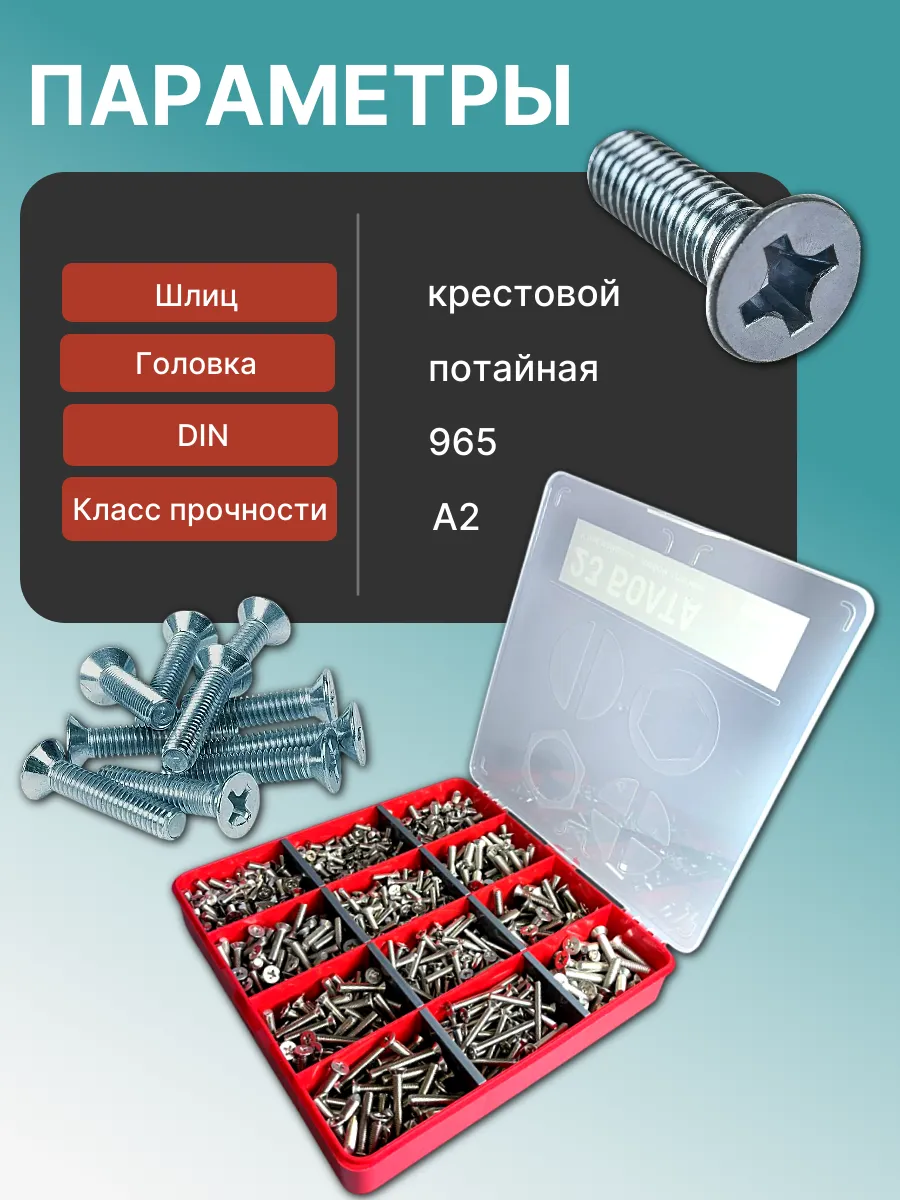 Винты потайные нержавейка М4,5,6 DIN965 в органайзере НАБОР 2