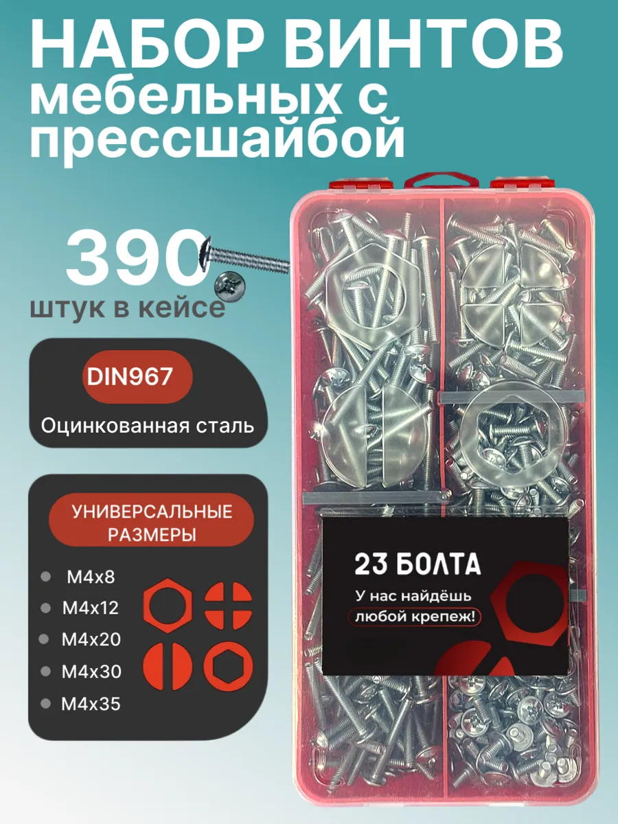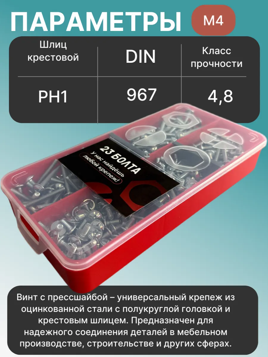 Винты с прессшайбой М4 мебельные DIN967 органайзер НАБОР 3