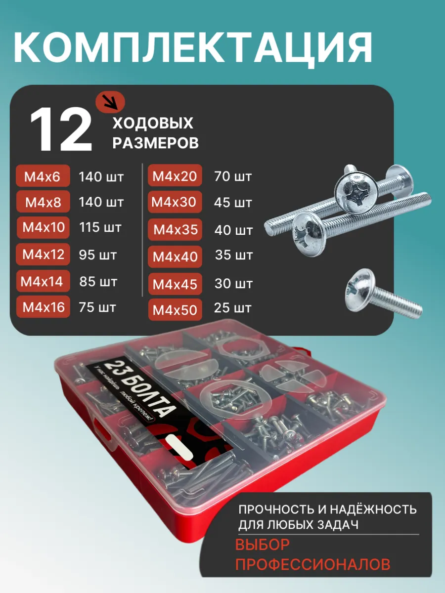Винты с прессшайбой М4 мебельные DIN967 органайзер НАБОР 6