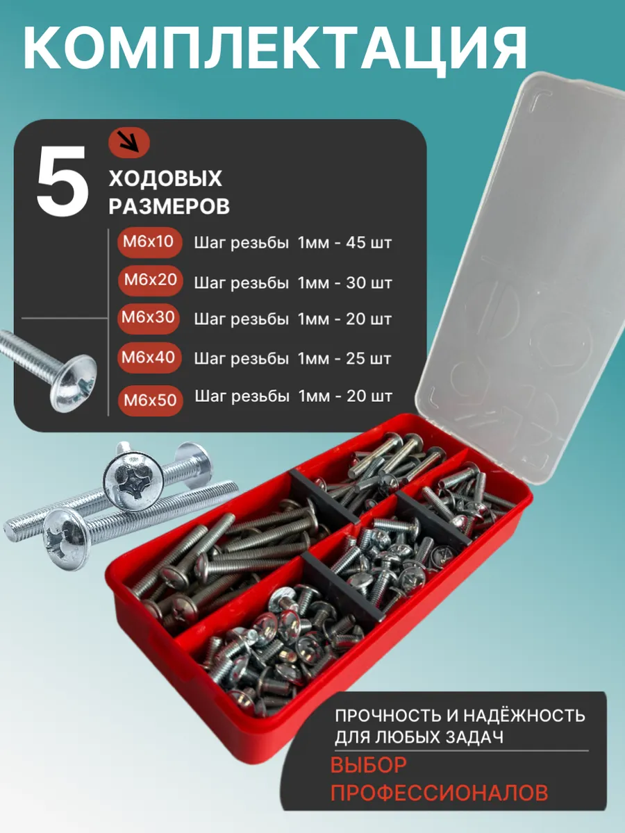 Винты с прессшайбой М6 мебельные DIN967 органайзер НАБОР 2
