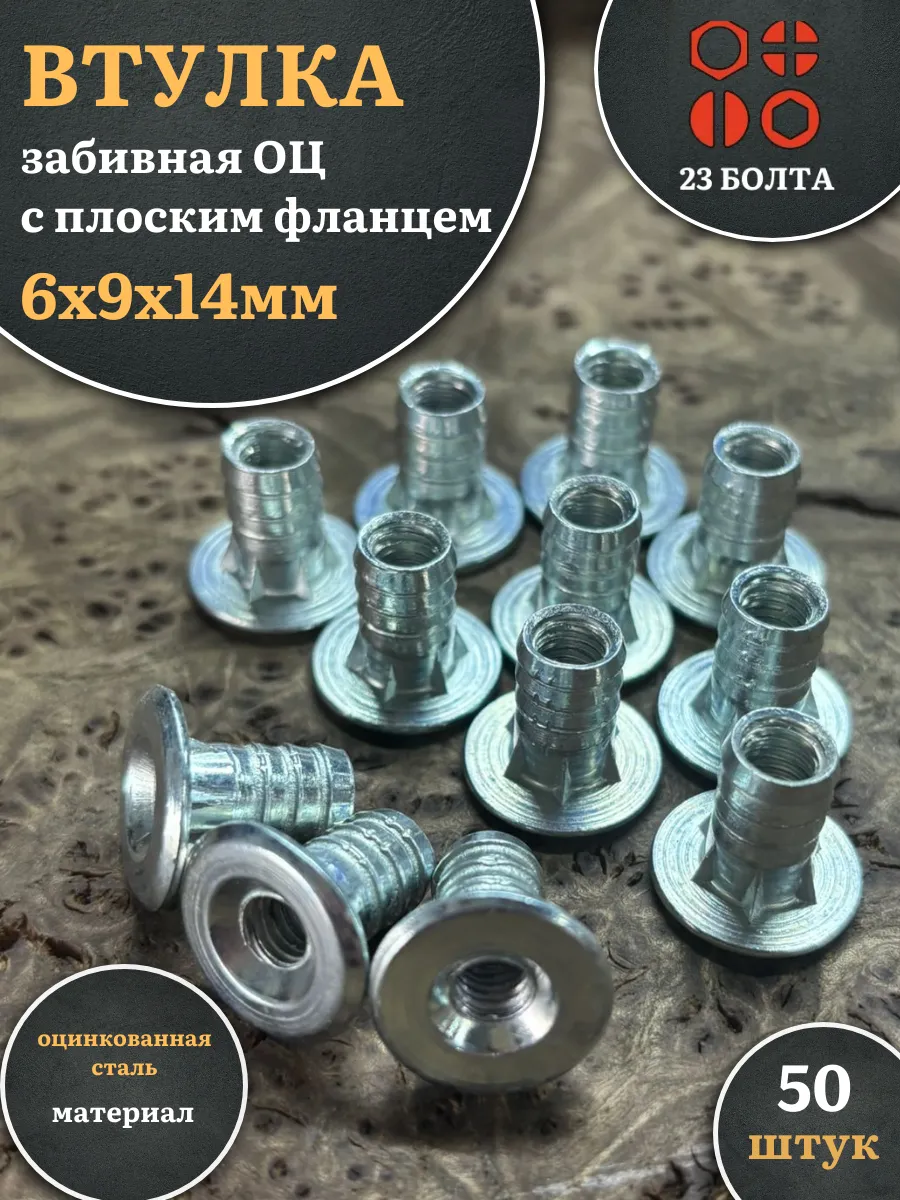 Втулка футорка забивная М6х9х14 с плоским фланцем ОЦ, 50 шт.