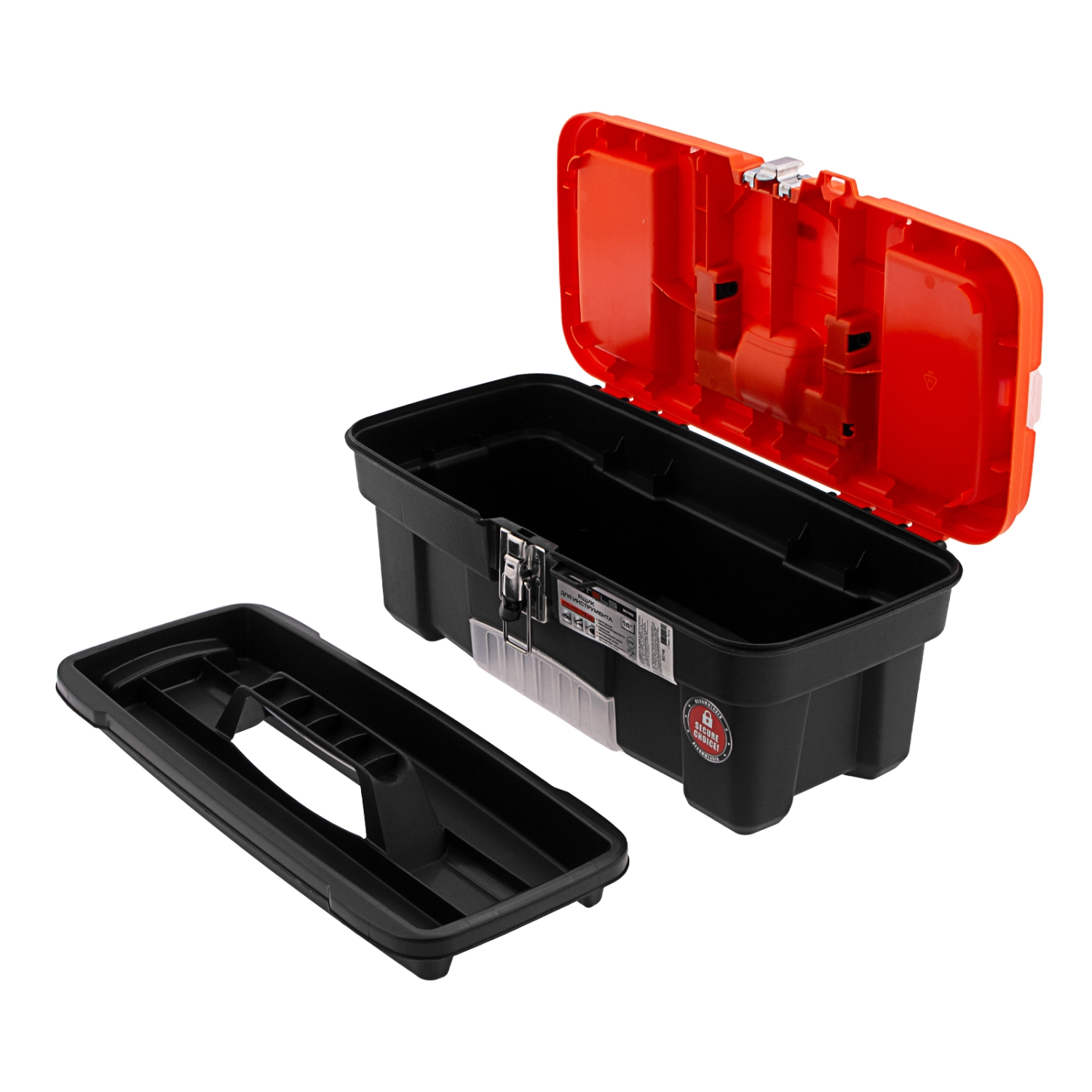 Ящик для инструмента с металлическими замками Stels 90746, 16 дюймов, 410 х 210 х 175 мм, — альтернатива коробке для инструментов. В нем можно расположить ручной инструмент, крепежи, хозяйственные мелочи, а также рыболовные снасти. В крышке имеются встроенные органайзеры, на дне - выкидной лоток с отсеками для мелких деталей, что увеличивает функциональность ящика. Его удобно брать в поездки, также ящик пригодится дома, на даче или в гараже. Ящик рассчитан на значительные нагрузки, поэтому в него можно положить много инструментов и расходников.
