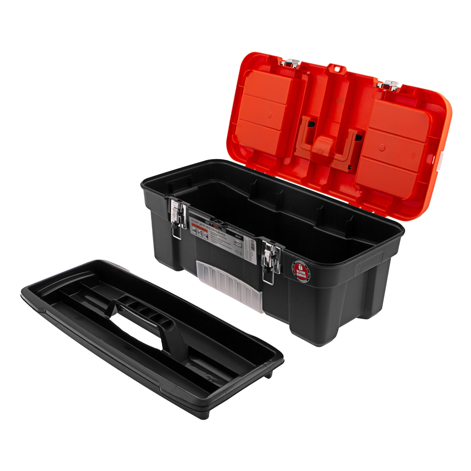 Ящик для инструмента с металлическими замками Stels 90747, 20 дюймов, 510 х 255 х 225 мм, — альтернатива коробке для инструментов. В нем можно расположить ручной инструмент, крепежи, хозяйственные мелочи, а также рыболовные снасти. В крышке имеются встроенные органайзеры, на дне - выкидной лоток с отсеками для мелких деталей, что увеличивает функциональность ящика. Его удобно брать в поездки, также ящик пригодится дома, на даче или в гараже. Ящик рассчитан на значительные нагрузки, поэтому в него можно положить много инструментов и расходников.