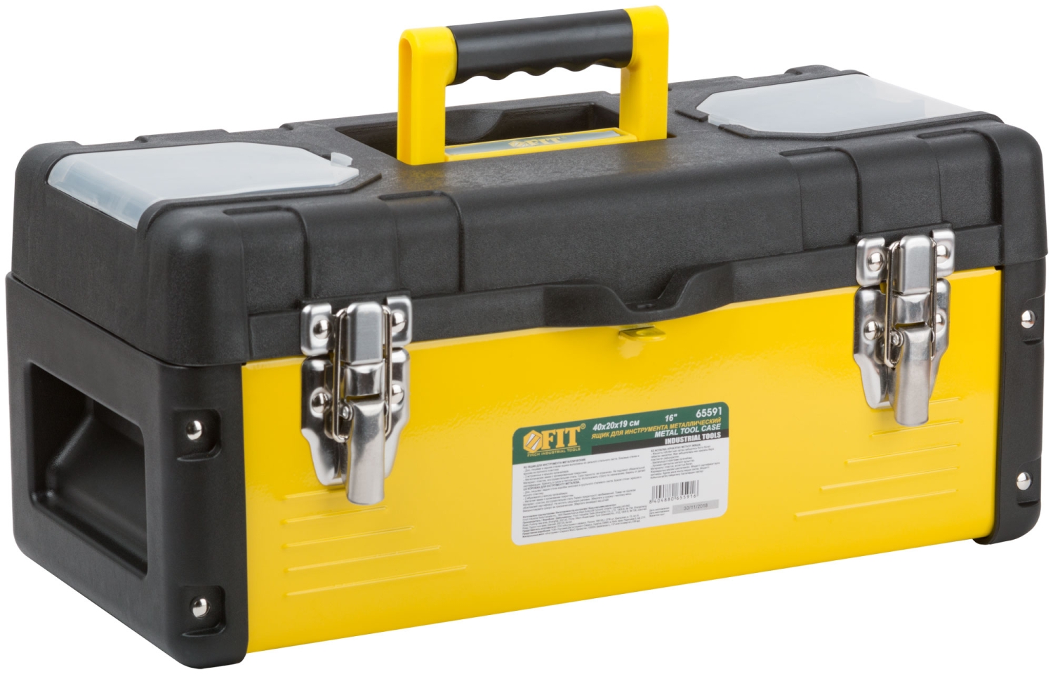 Ящик FIT 65591 предназначен для хранения и удобной транспортировки инструментов. Передняя, задняя стенки и днище изготовлены из цельного стального листа, а боковые стенки и крышка - из ударопрочного пластика. Такая конструкция обеспечивает долгий срок его эксплуатации. Подвижный лоток и два встроенных органайзера на крышке позволяют разместить необходимые инструменты и аксессуары. Крепкие металлические замки с хромированным покрытием не только надежно защищают ящик от непреднамеренного открывания, но и придают ему эстетическую привлекательность. Инструментальный ящик применяется как в профессиональной сфере, так и в быту: он очень вместительный, помогает упорядочить нужные в работе предметы и всегда держать их под рукой.
