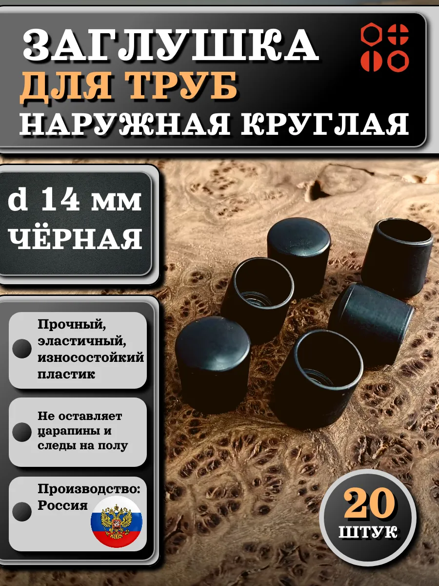 Заглушка для труб наружная круглая d 14 мм черная, 20 шт