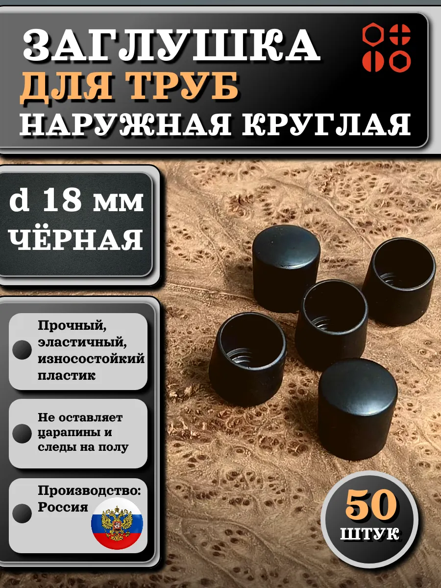 Заглушка для труб наружная круглая d 18 мм черная, 50 шт