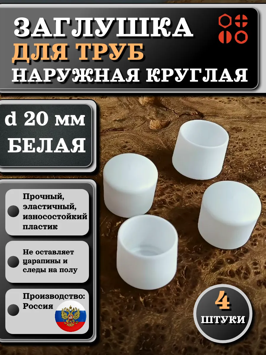 Заглушка для труб наружная круглая d 20 мм белая, 4 шт