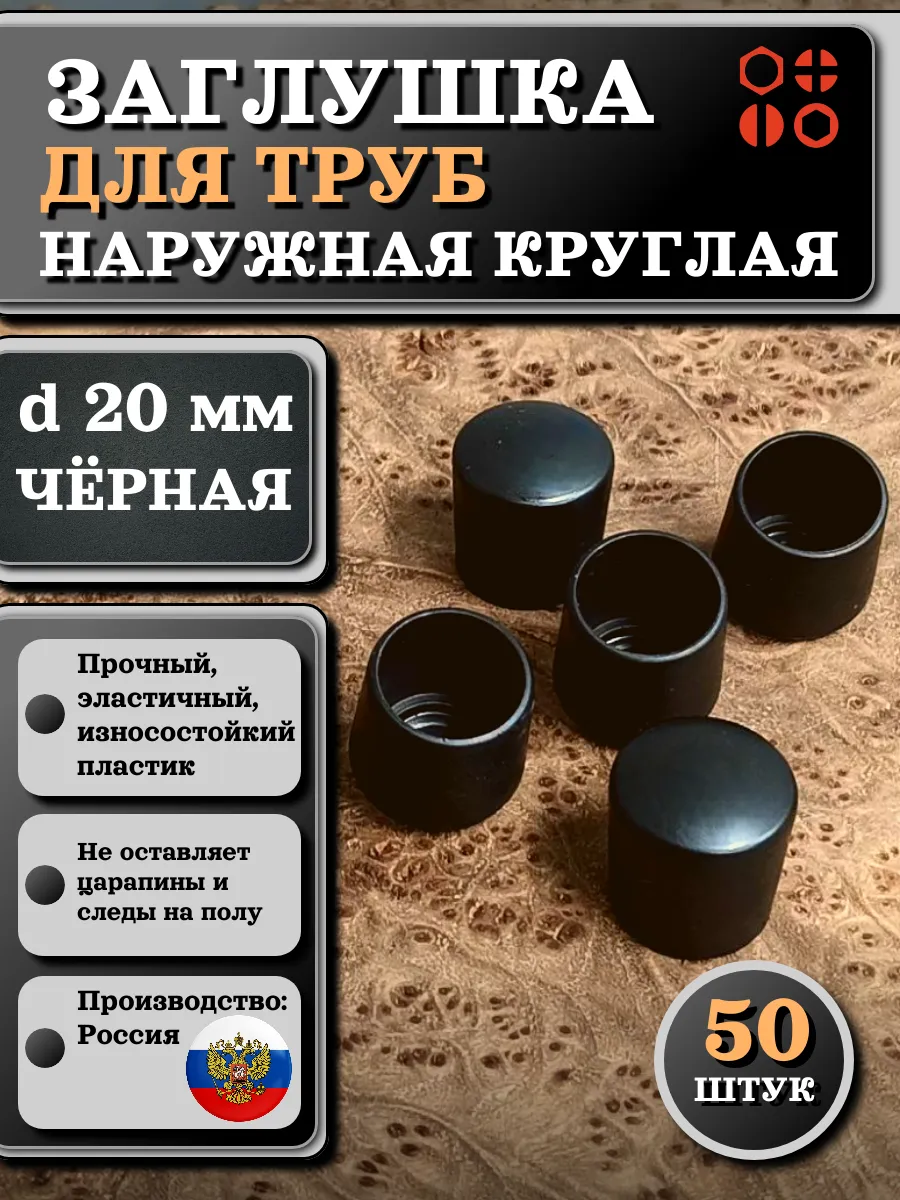 Заглушка для труб наружная круглая d 20 мм черная, 50 шт