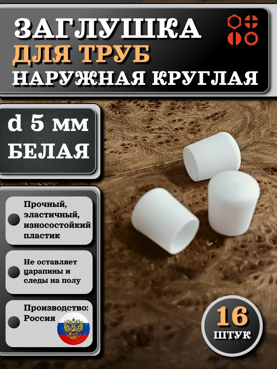 | Заглушка для труб наружная круглая d 5 мм белая, 4 шт | 26-2024ф4 | 1 шт. |