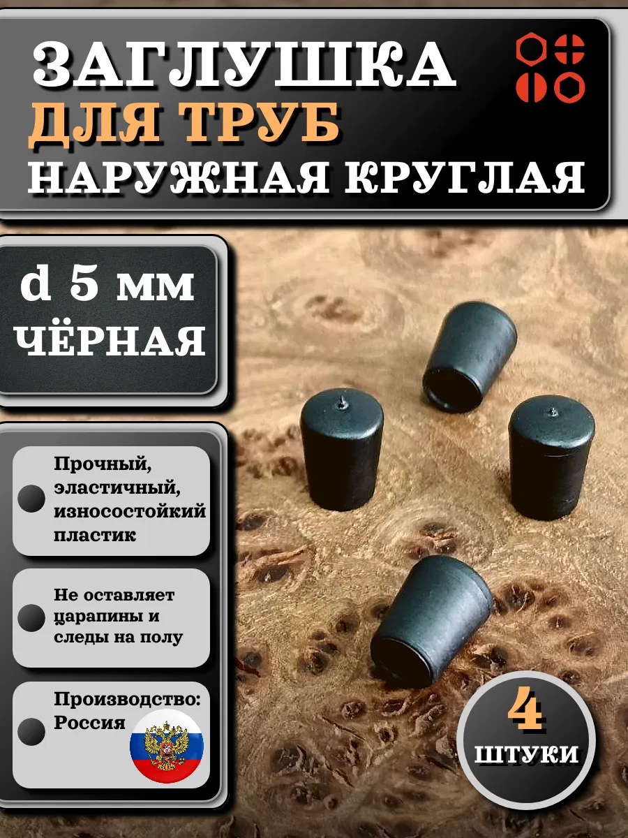 Заглушка для труб наружная круглая d 5 мм черная, 4 шт