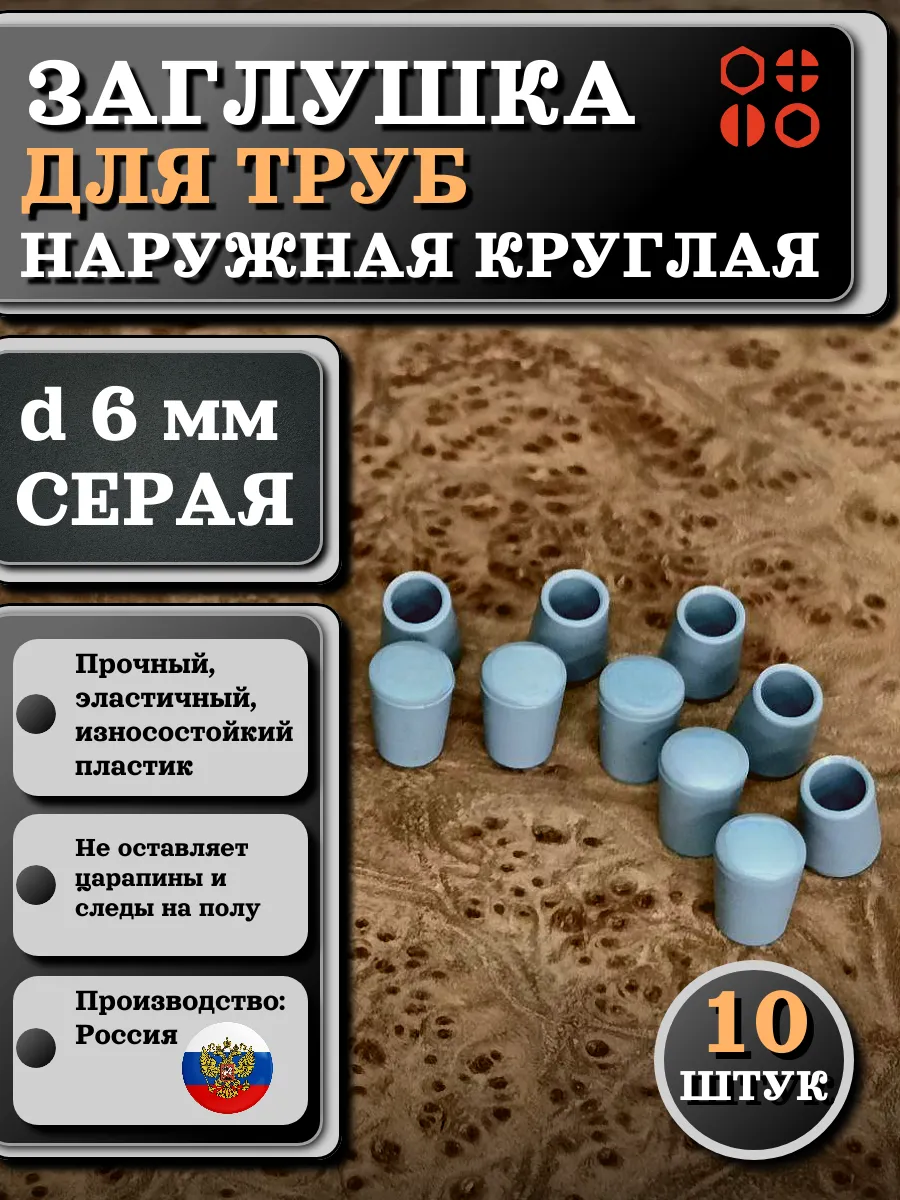 Заглушка для труб наружная круглая d 6 мм серая, 10 шт