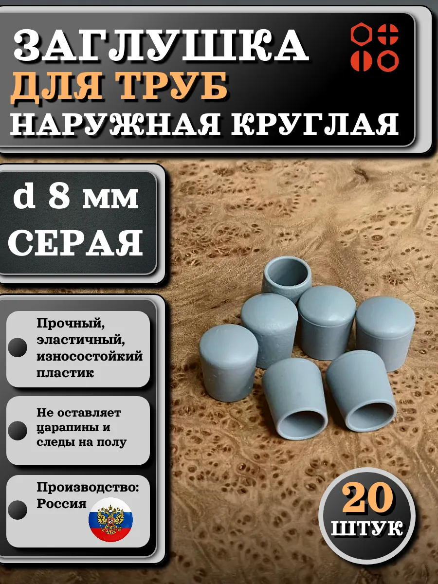 Заглушка для труб наружная круглая d 8 мм серая, 20 шт