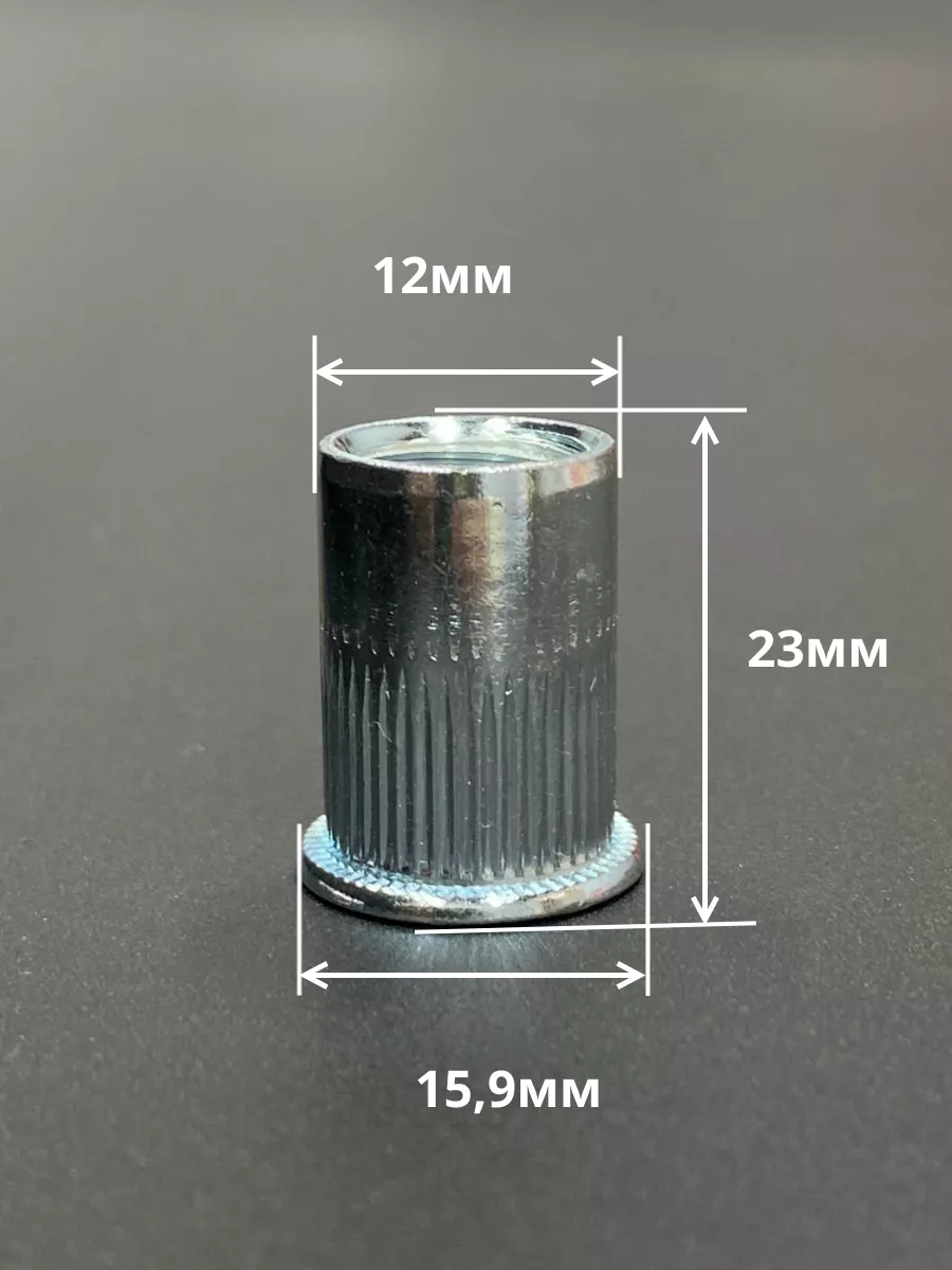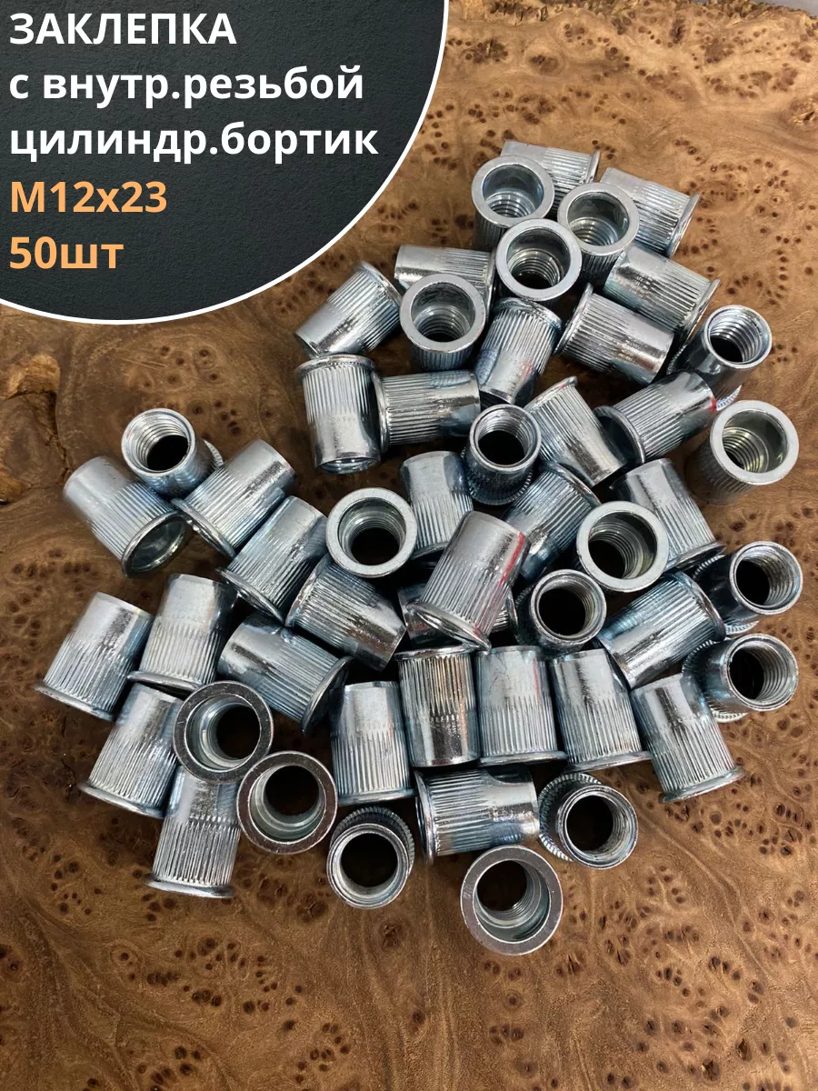 Заклепка резьбовая М12 х23 цилиндрический бортик, 50 шт.