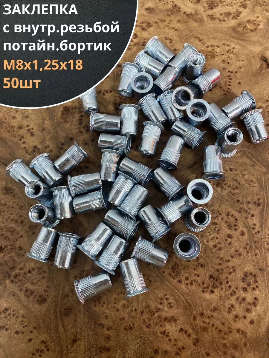 Заклепка резьбовая М8 х1,25х18 потайной бортик, 50 шт