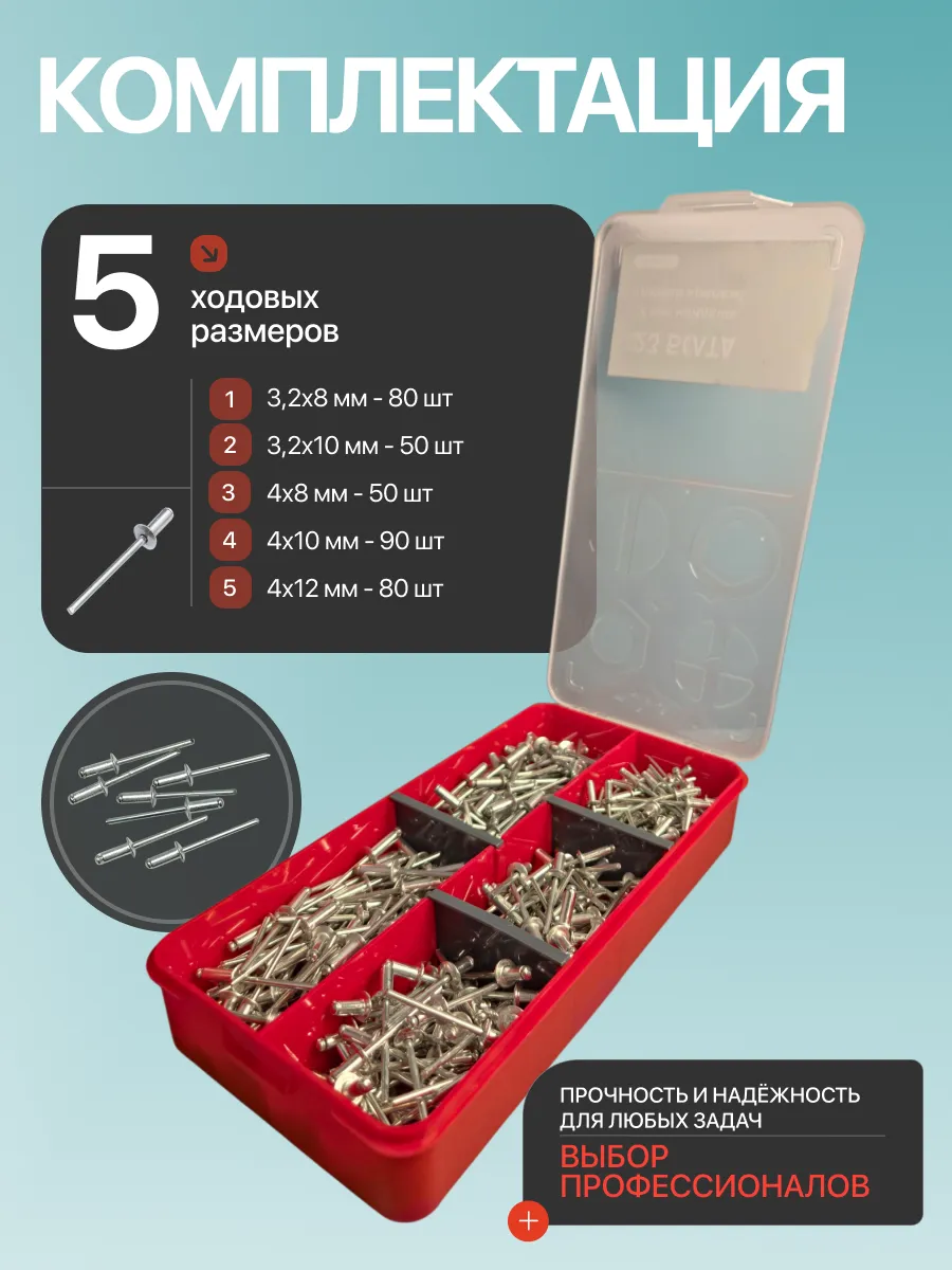 Заклепки вытяжные М3,2 и М4 в органайзере НАБОР 1