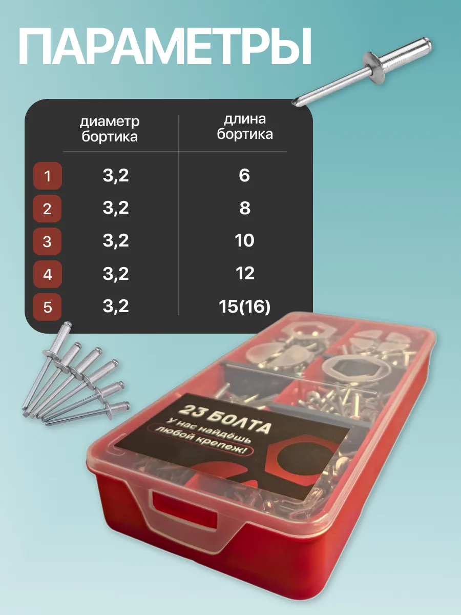 Заклепки вытяжные М3,2 в органайзере НАБОР 1