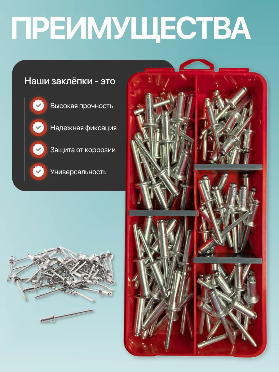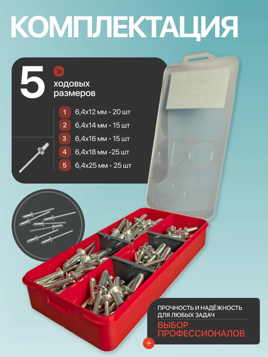 Заклепки вытяжные М6,4 в органайзере НАБОР 1